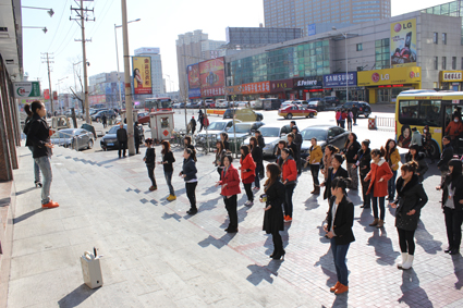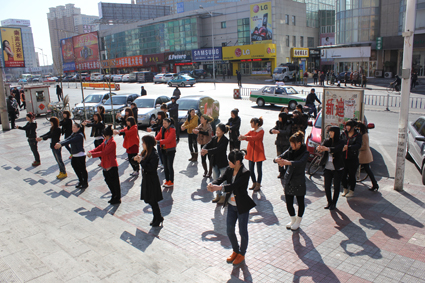 今天上午十点课间操时间一到,学员们纷纷下楼来到学校前的小广场上。整理好队形后,随着欢快的《快乐崇拜》音乐声起,同学们纷纷跳起操来。快乐崇拜,崇拜快乐,我们一群朝气蓬勃、不知疲倦和困难的新生力量,什么又能能阻挡我们的脚步呢!路过的人驻足、店铺的人侧目,我们就是我们,年轻就是年轻!