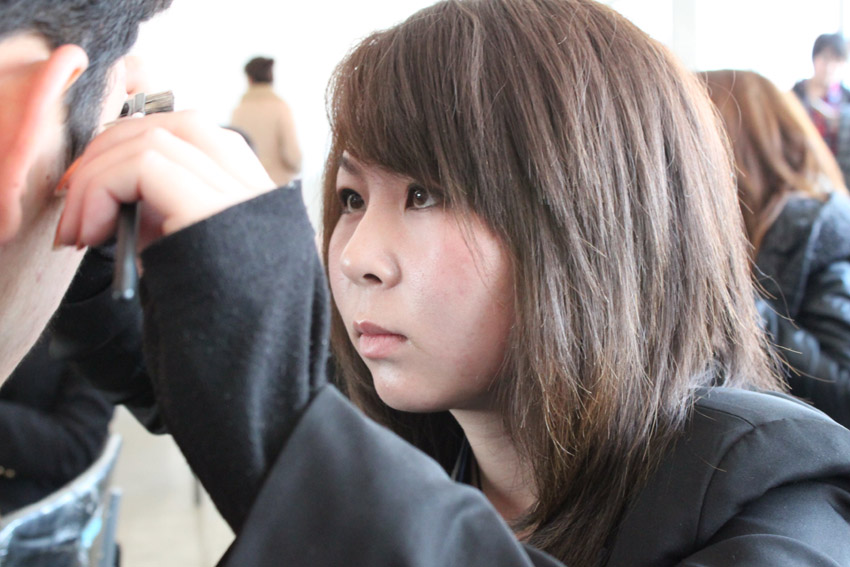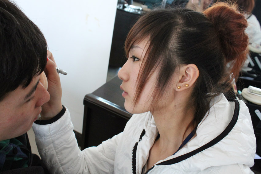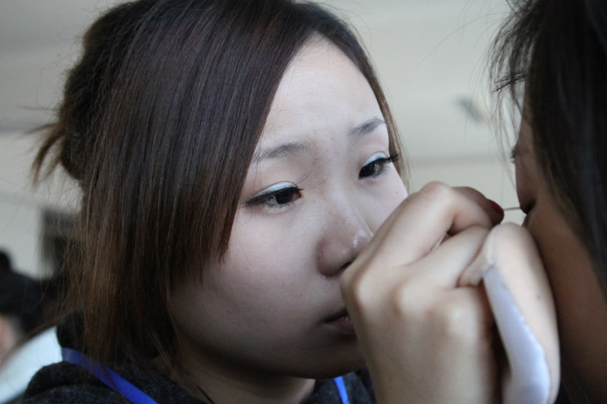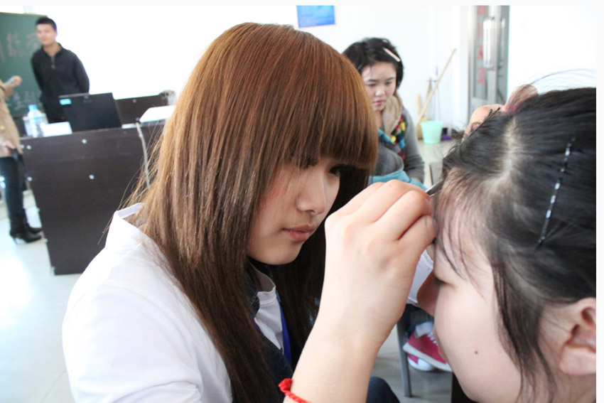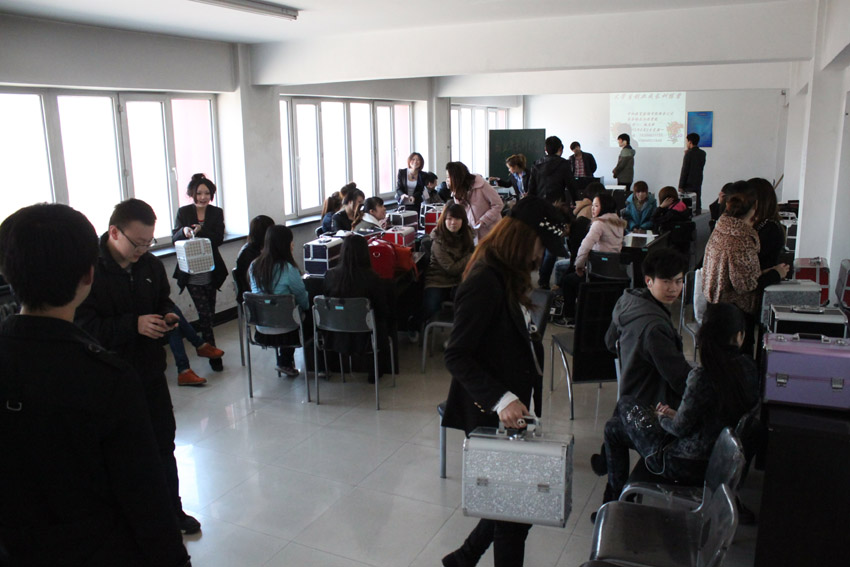 4月2日中午,天娇学校40余名学员来到齐齐哈尔工程学院,为50多名将要参加应聘的大学生化妆。