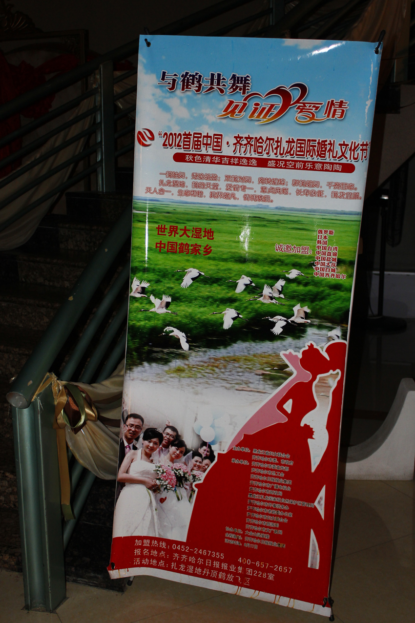 2012年8月17日,由齐齐哈尔市委市政府主办,齐市总工会、妇联老龄委等承办,大金山国宴楼协办的“2012首届中国·齐齐哈尔扎龙国际婚礼文化节”正式举行。我校应邀赞助本次活动的全体新人及主持人的化妆。