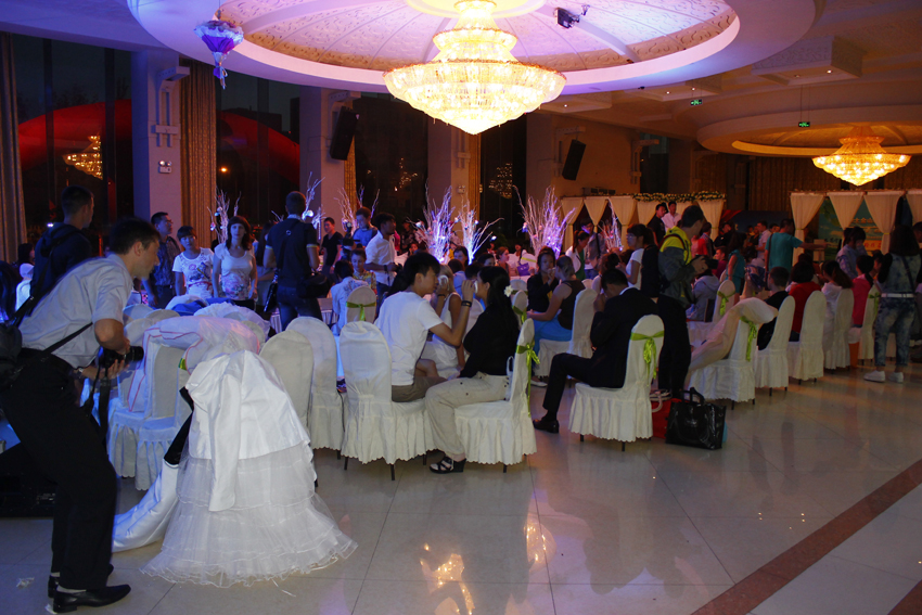 到大金山国宴楼后,主办方组织参加国际婚礼节的新人和金婚甚至钻石婚的伉俪来到化妆场地,终于到我们化妆师们一展技能的时候了!