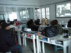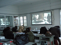 中午十二点的时候,学员们吃完饭以后,等在放映机旁,安静的等待着老师们给他们放映电影,天娇学校放映的电影很多,从最时尚的最新的电影《失恋33天》到美国时尚大片《暮光之城》等等 现已放映十多部电影。