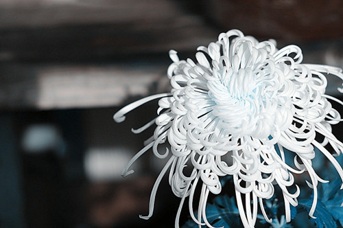在颜色上,白菊晶莹透明、清洁怡雅;黄菊雍容华贵,金碧辉煌;红菊紫气如霞,热情奔放;紫菊浓稠如墨,凝重浑厚;墨菊深沉端倪,瑰丽飘逸。雏菊则是菊花中最小巧玲珑的品种,嫩黄的蕊,洁白无瑕的瓣,显得朴素纯洁。还有罗兰色的莲花菊、浅黄色的龙爪菊、红白色的翎管菊。都是形神兼备,群芳簇拥,体态婆娑,玲珑俊秀而生动传神,让人目不暇接,赏心悦目。