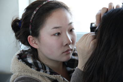 12月8日,我校为齐齐哈尔工程学院提供其“一二九”文艺汇演的演员化妆,同时安排摄影班学员吴碧欧随行,负责拍摄整个化妆过程,并在工程学院选择较好的景点拍摄学员写真。